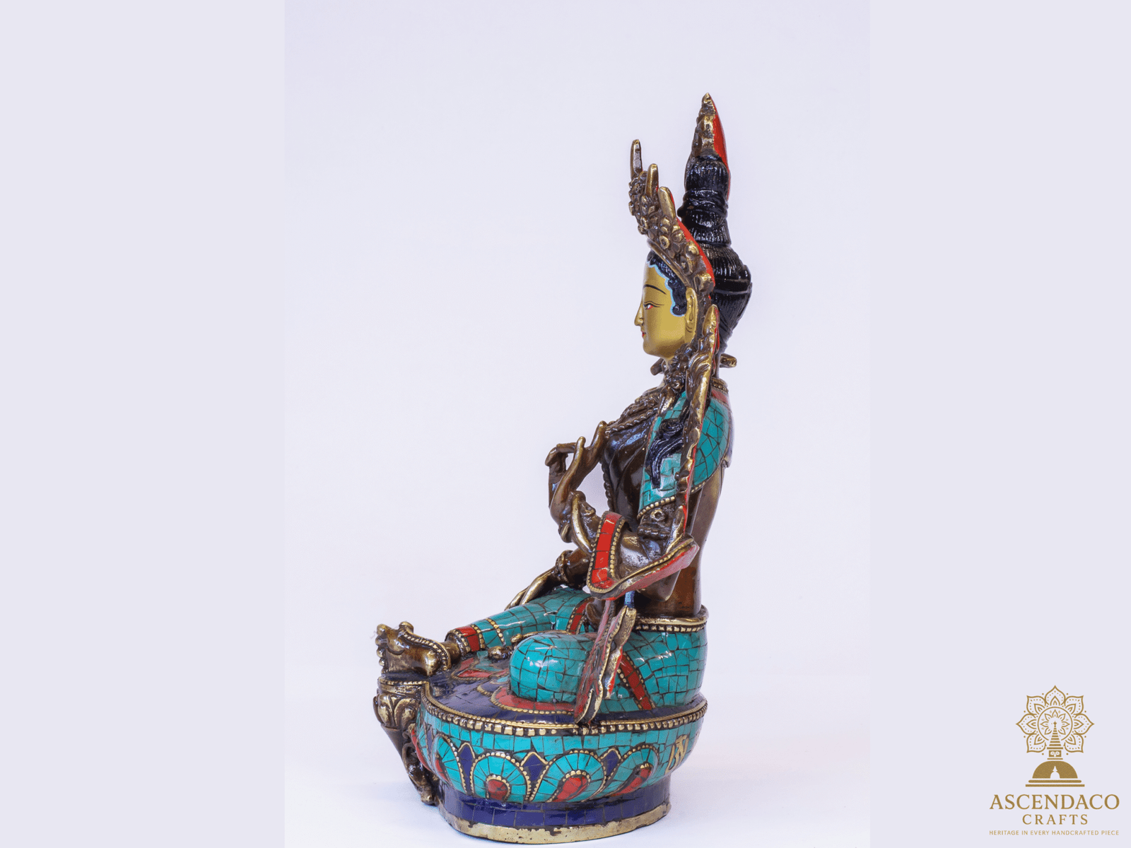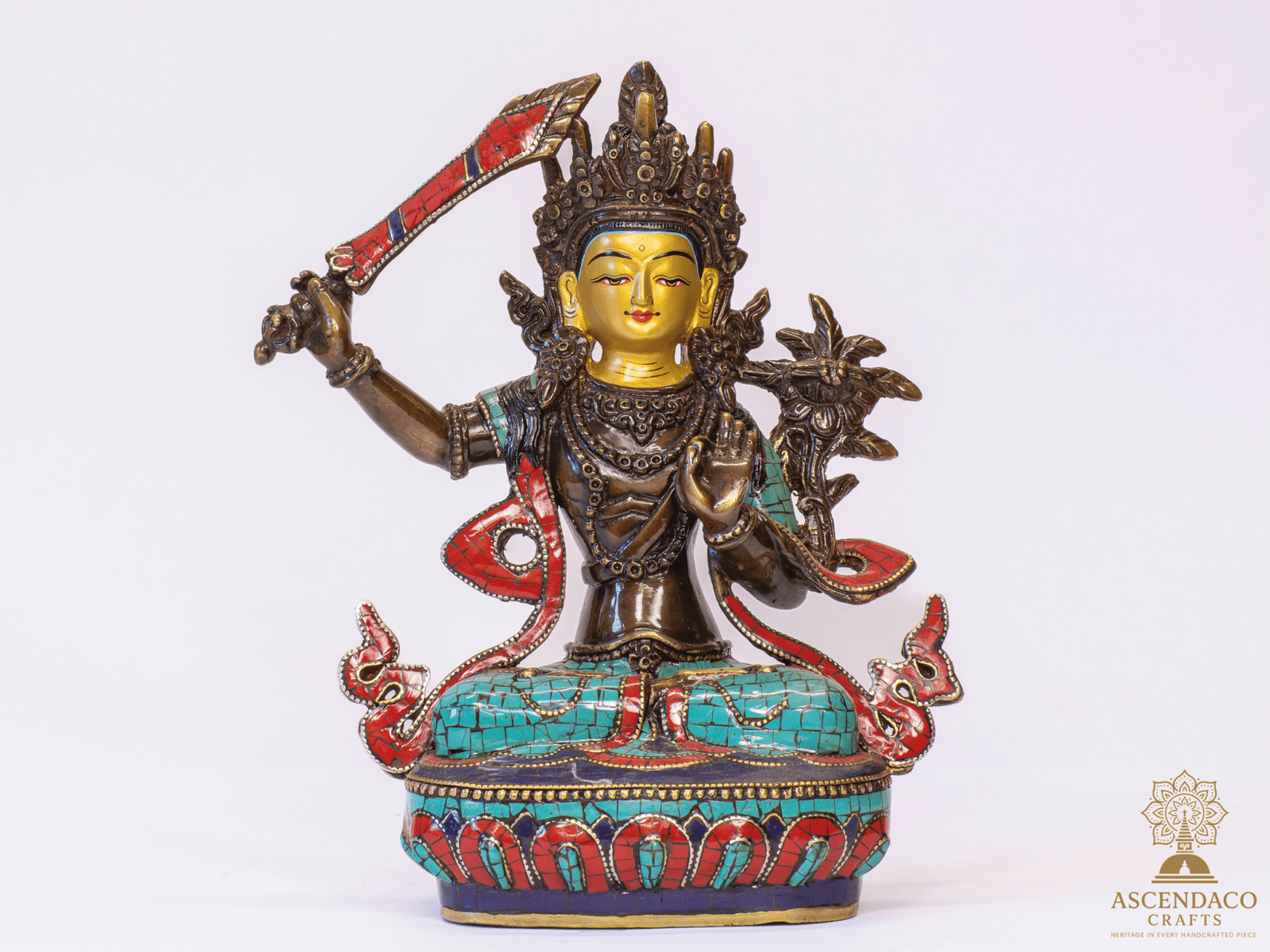Symbolism: Manjushree wields a sword of wisdom and holds a lotus of purity — a reminder to cut through ignorance and embrace truth.