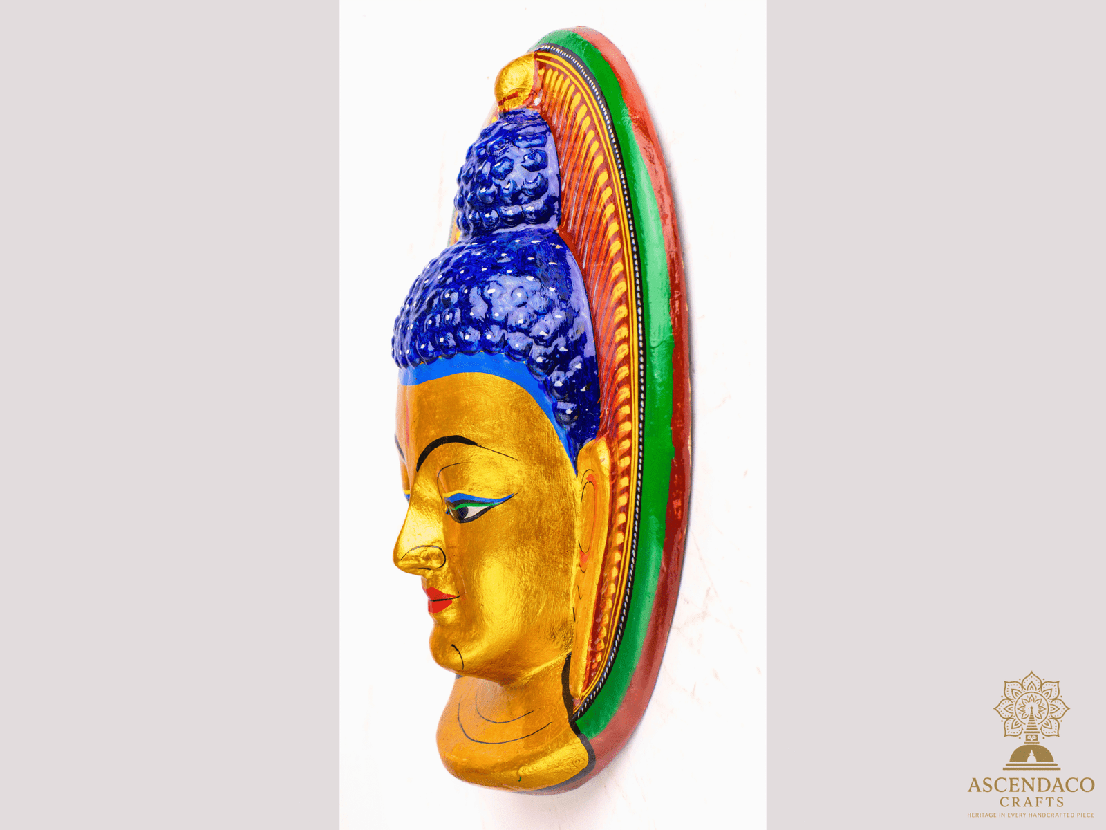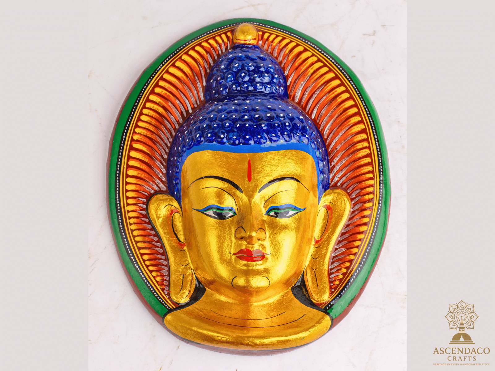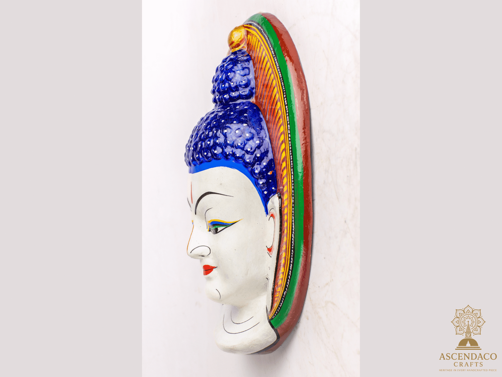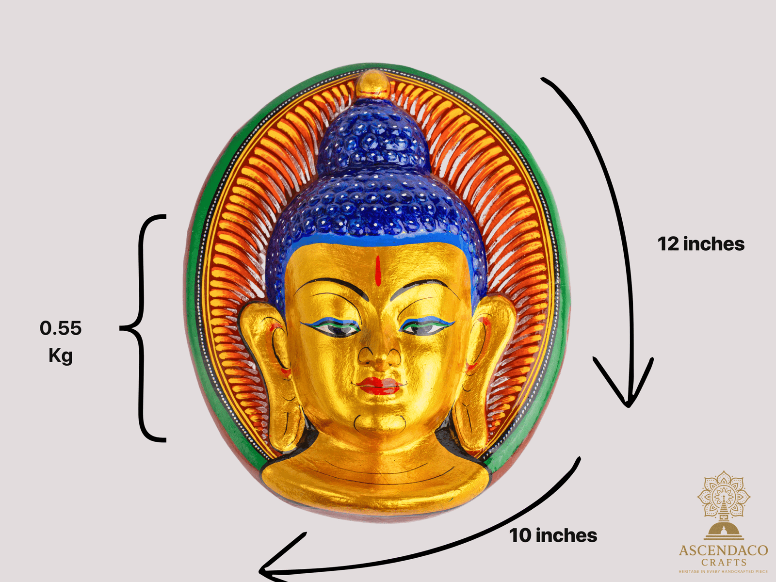 Elevate your space with this serene Hand‑Painted Buddha Relief Mask, lovingly handcrafted in Nepal using paper, cotton & clay. Measuring 12″×10″ and weighing just over half a kilo, it’s a stunning centerpiece that brings calm and reverence into any room. Choose between the radiant Golden Face or the tranquil White Face variant, each adorned with vibrant blue hair and intricate aura detailing.